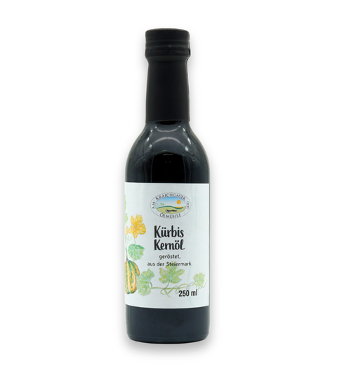 Geröstetes Kürbiskernöl aus der Steiermark.